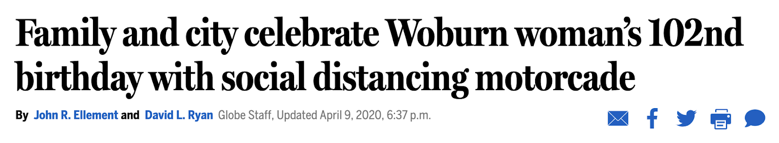 102? Social distancing? This woman was alive when World War I ended and Spanish Flu began.