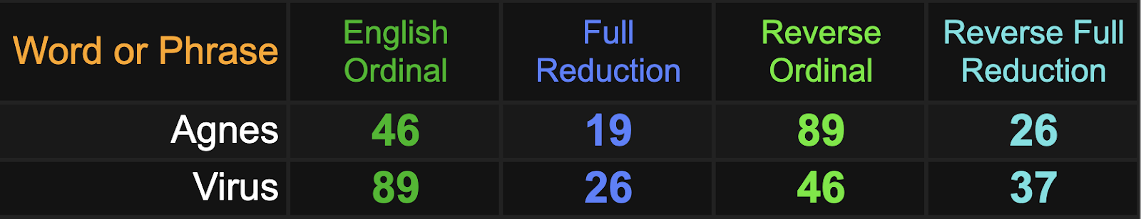 Her name has standout numbers that connect to ‘virus’ and ‘coronavirus’.