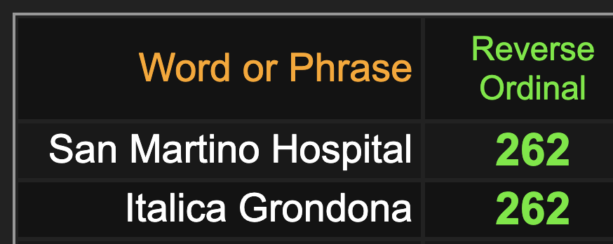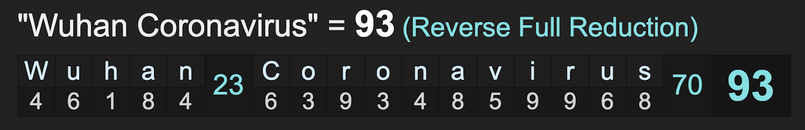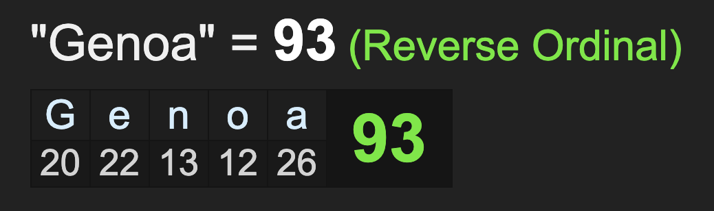 Genoa sums to 93, like ‘propaganda’ and ‘Wuhan Coronavirus’.