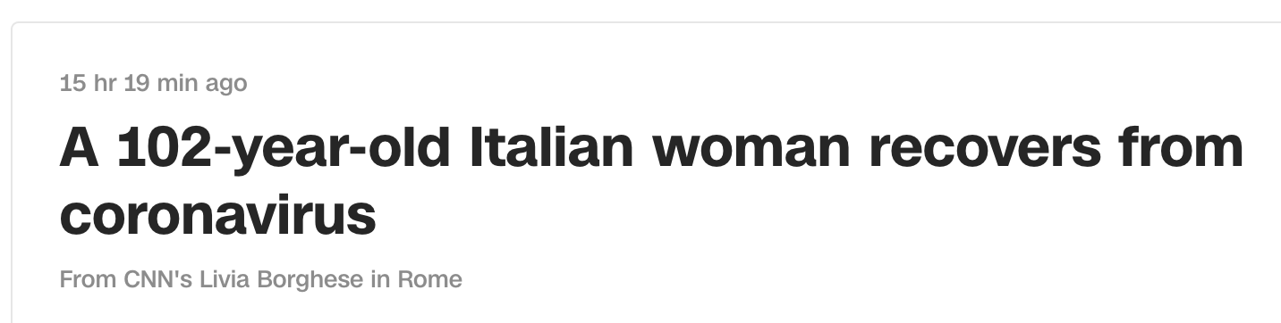 102-year-old Italian woman recovers from coronavirus, March 27, 2020 news