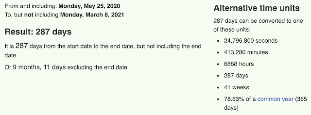 As for March 8, 2021, it is 9 months and 11 days after May 25, 2020.