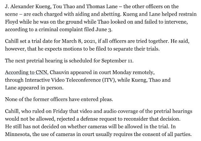 Judge sets key George Floyd murder trial dates for September 11 and March 8, 2021