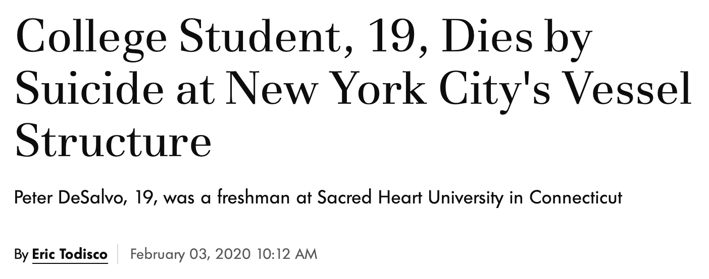 19-year-old Sacred Heart University student dies by suicide, February 1, 2020 +February 3rd news for suicide awareness