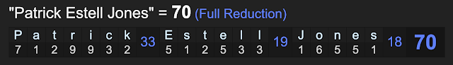 Notice, his full name, Patrick Estell Jones, sums to 70, like ‘coronavirus’.