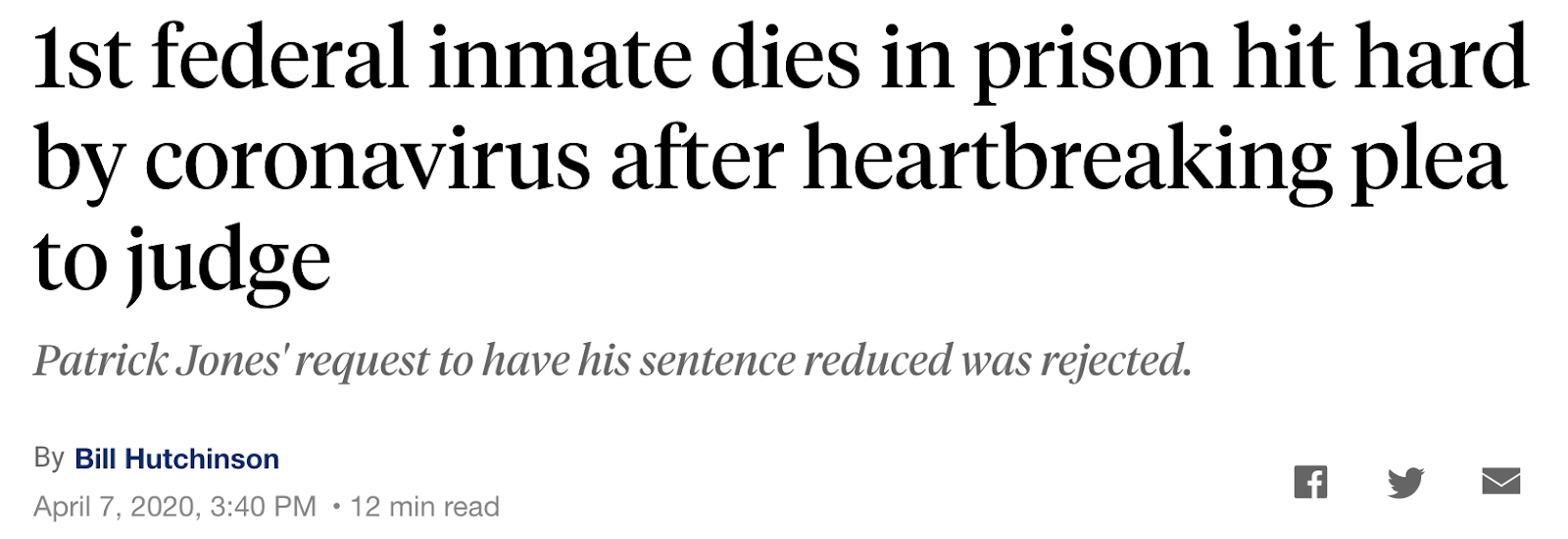 1st federal prisoner dies in prison from coronavirus, Patrick Estell Jones, April 2020