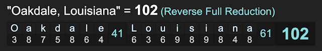 For one last number encoded in this story that has been coded all over, there is a 102 in Oakdale, Louisiana.