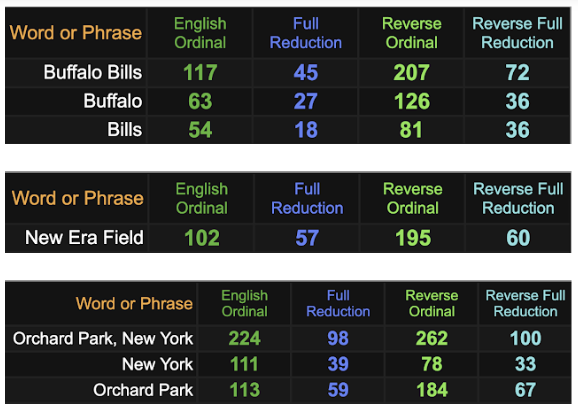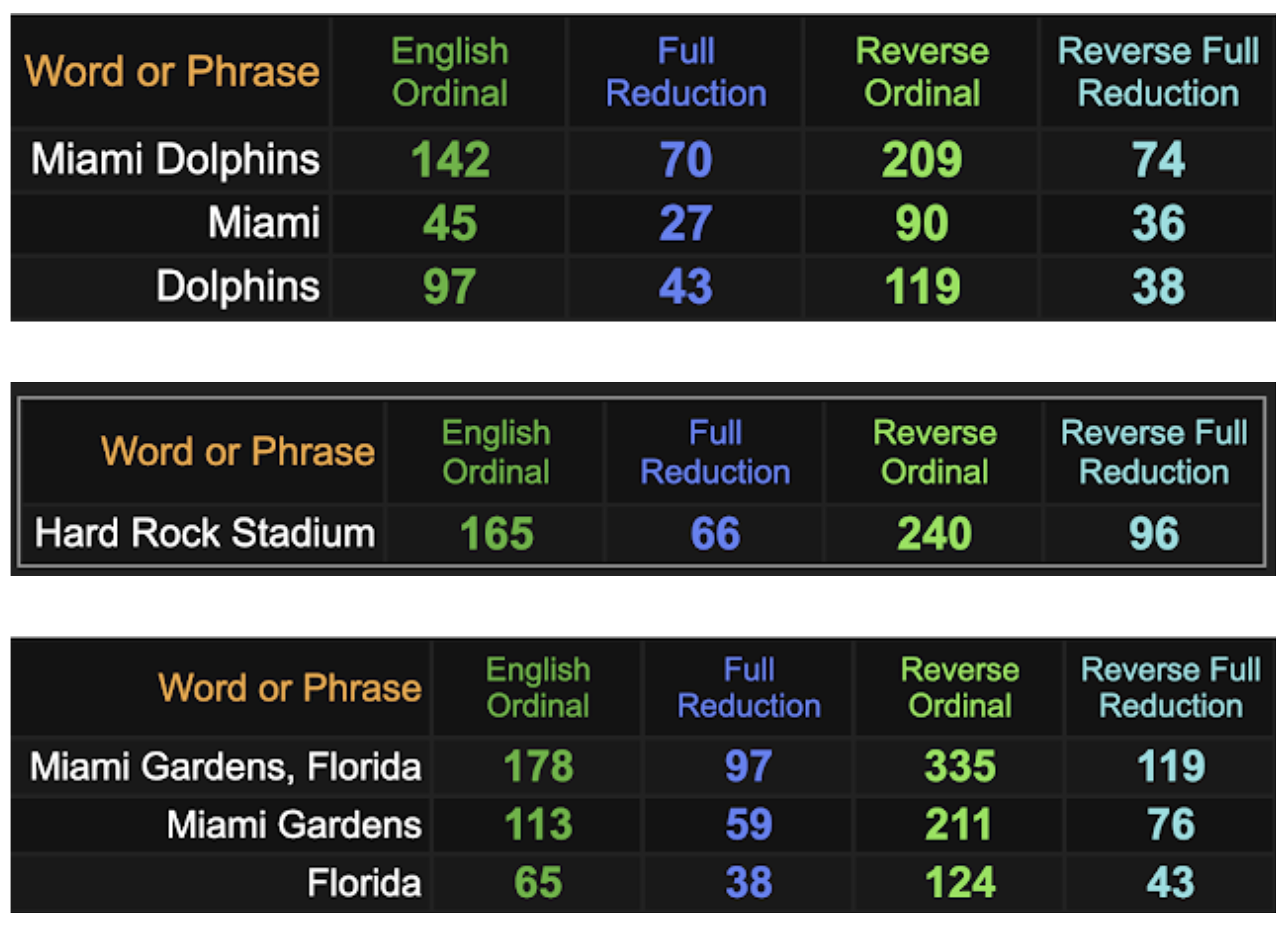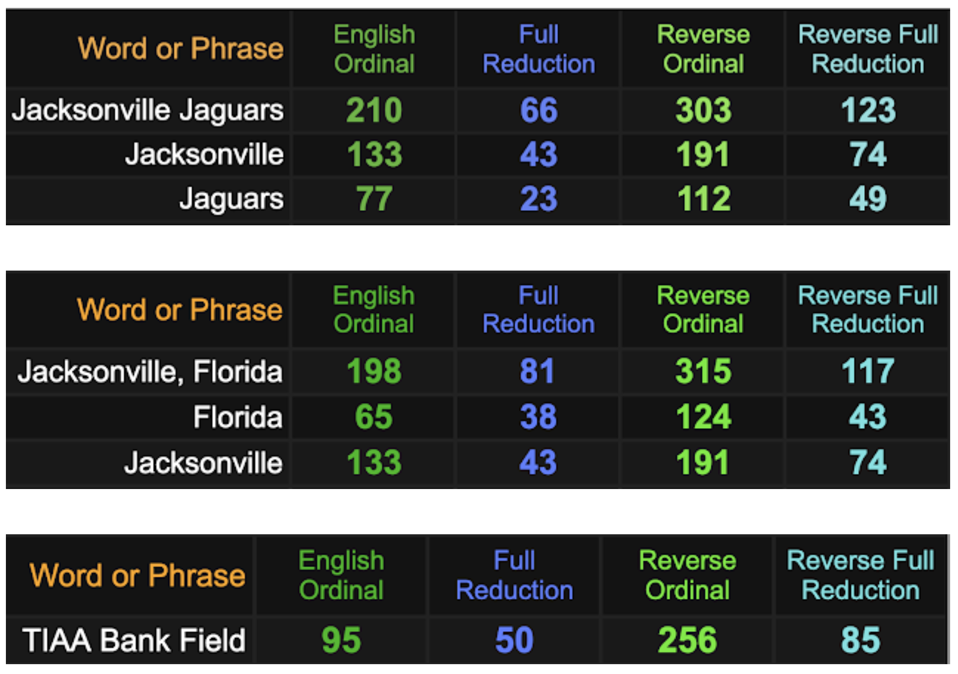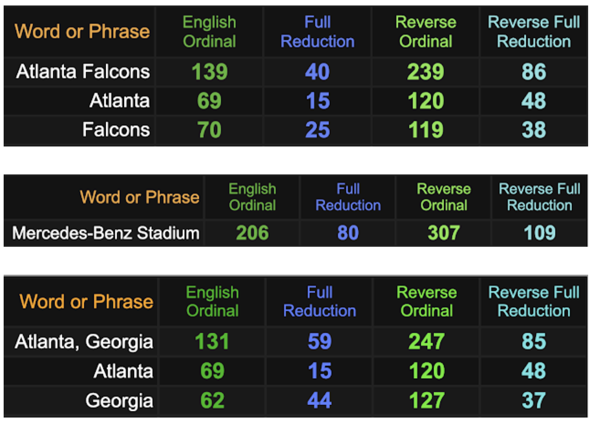 Below is a list of all 32 teams, sorted by division, and has the gematria values and birthdays for the coaches and quarterbacks.