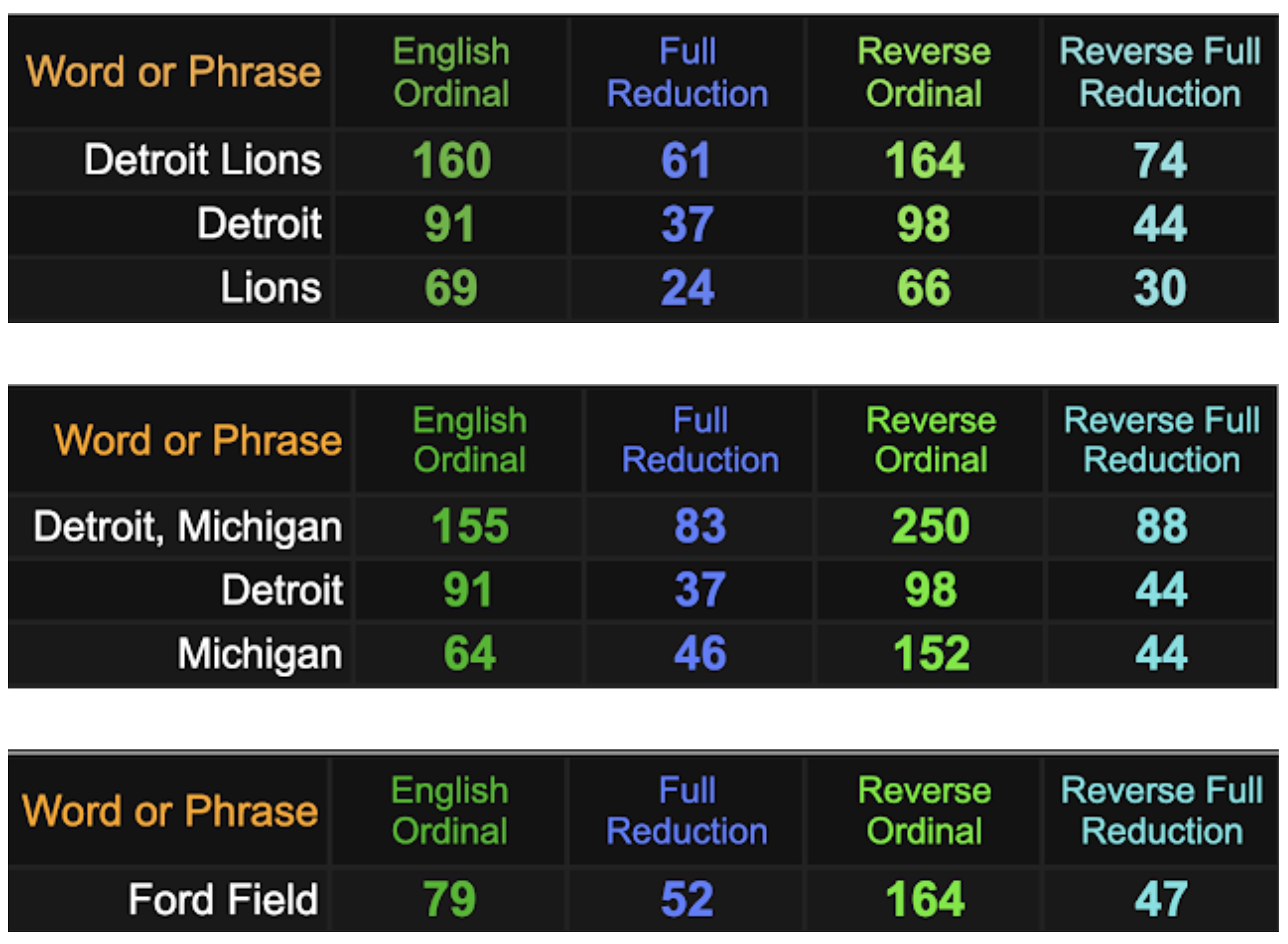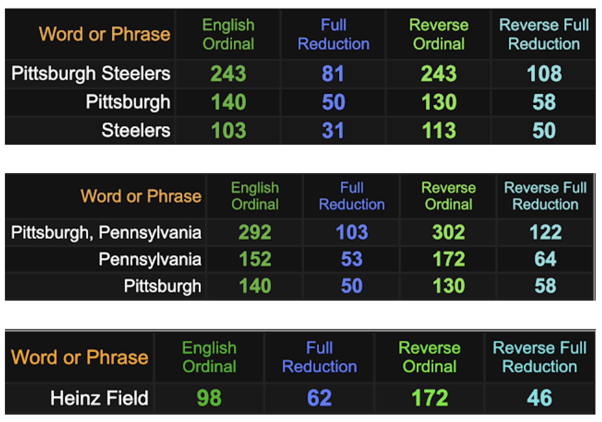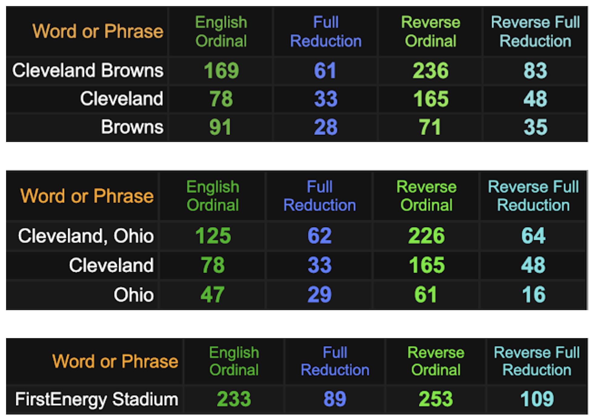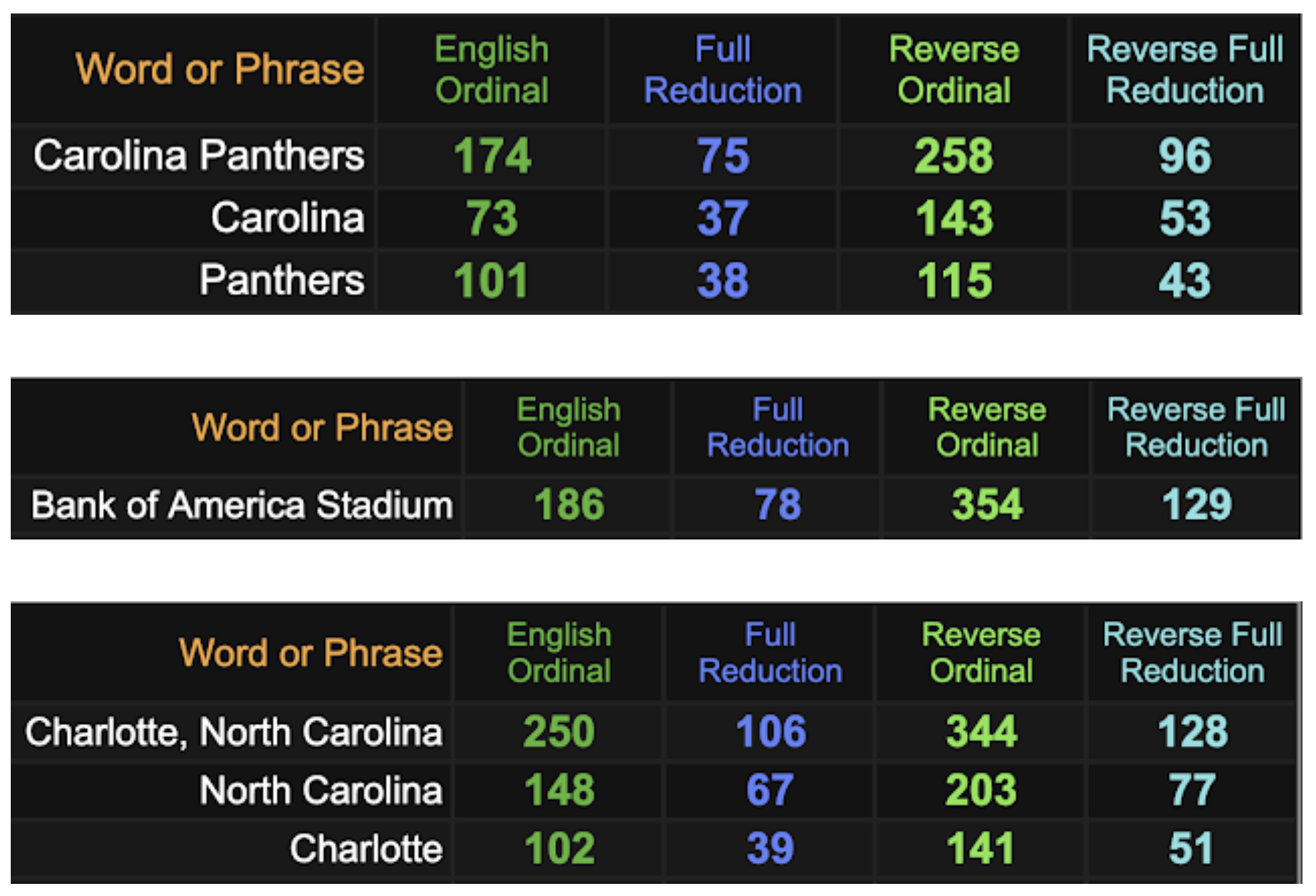 Below is a list of all 32 teams, sorted by division, and has the gematria values and birthdays for the coaches and quarterbacks.