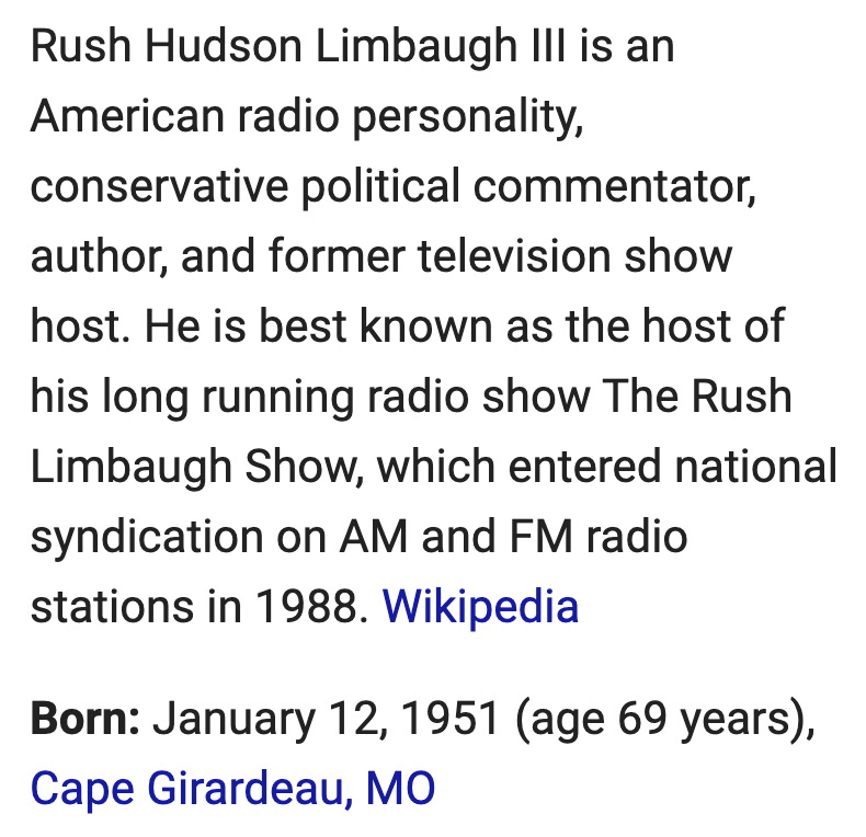 Of course the year began with the death of Neil Peart of the band Rush, now it is the ball of blabbering lard, Rush Limbaugh, and I’ll add, his departure can’t come soon enough.