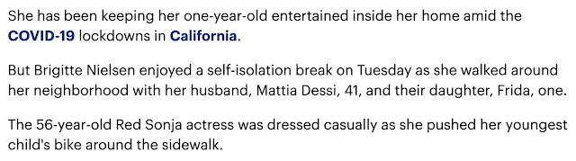 56-year-old Brigitte Nielsen goes for a walk 70-days before her birthday for coronavirus stay-at-home break, May 6, 2020 news