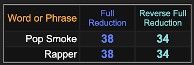 As we have been discussing, 2020 will be a bad year for entertainers because of the gematria of ‘death’, summing to 20, and here is the death of another 20-year-old, who has a “38” rap name.