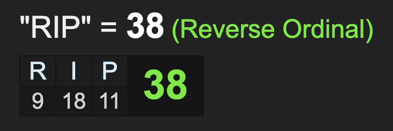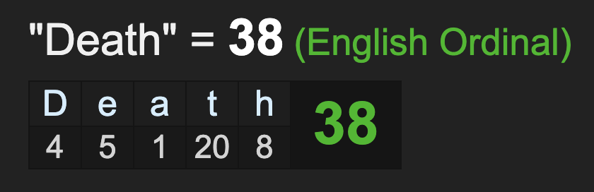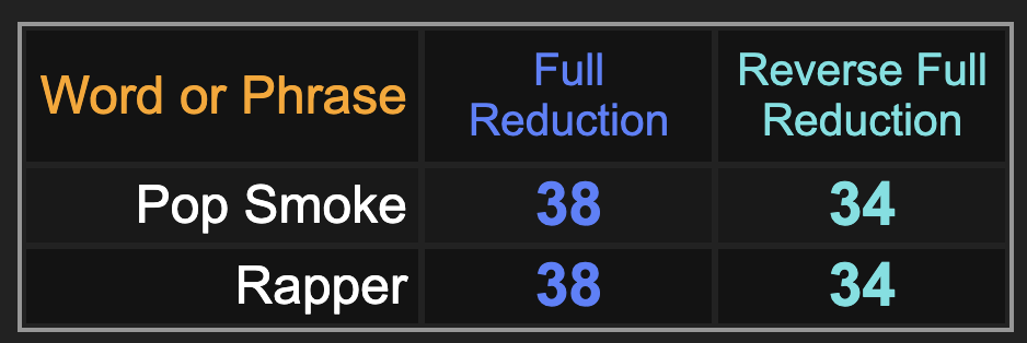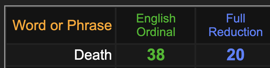 As we have been discussing, 2020 will be a bad year for entertainers because of the gematria of ‘death’, summing to 20, and here is the death of another 20-year-old, who has a “38” rap name.