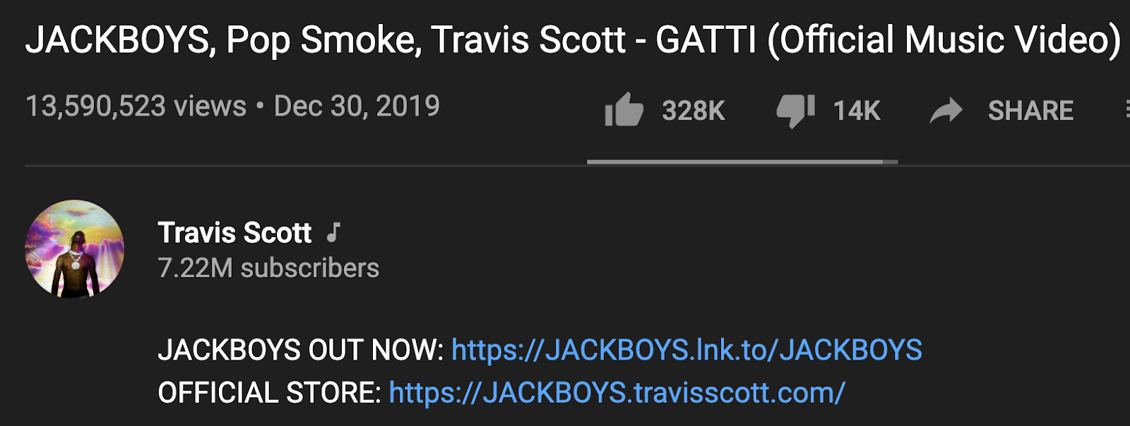 Note, the video with Travis Scott and Pop Smoke released on 12/30, the unique 42 date.  12/30 = 42