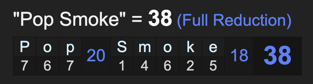 More on the gematria of ‘Pop Smoke’.