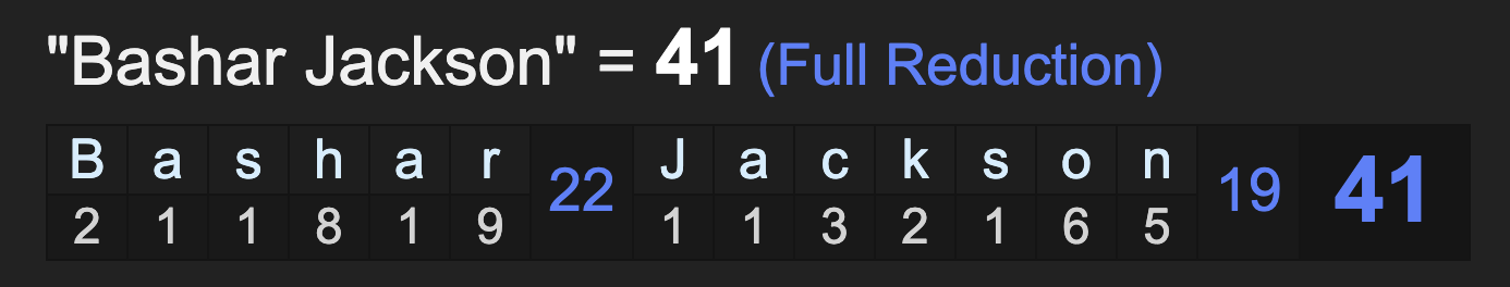 His birth name is Bashar Jackson, and he is dead on a date with 41 numerology.
