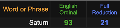 For one last point, notice the overlap between Heroin and Saturn, each summing to 42, 69 and 93.