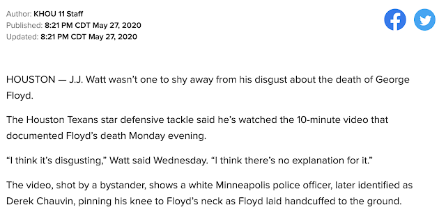 JJ Watt, who participated in May 15, 2019 Mitch Lundgaard psy-op, weighs in on May 25, 2020 killing of George Floyd