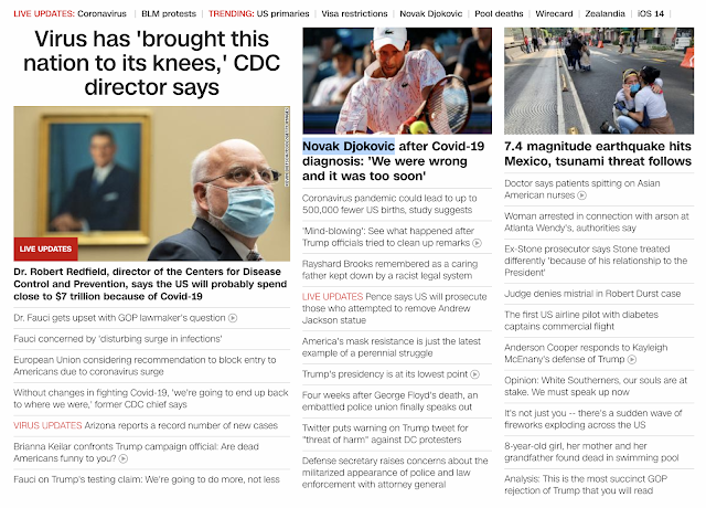 Notice that top headline, the story about the CDC spending $7 trillion on coronavirus… The headline itself, saying the virus has ‘brought this nation to its knees’ is symbolic.