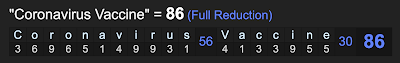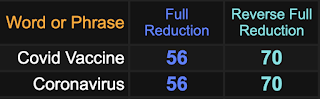 First of all, notice how ‘Covid Vaccine’ equates to coronavirus, 56 and 70.