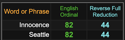 In light of Wuhan showing up in Seattle, as the first documented case, outside of Mainland China, notice the gematria of ‘Innocence’ and ‘Seattle’.