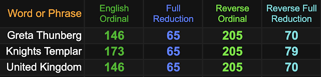 Notice how the gematria of ‘Greta Thunberg’ overlaps with Knights Templar and United Kingdom, two of the very key players in this contrived coronavirus outbreak ordeal.