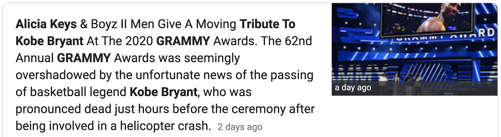 If you watch the clip, you’ll hear Alicia Keys call the Staples Center the house that Kobe built. Let us not forget that Kobe died on 157th day of his age, in light of this.