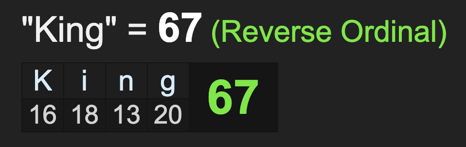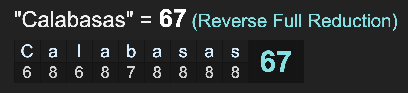 And for one last point about Alicia Keys, her name sums to 67, like Calabasas, King and blood sacrifice, corresponding with the 67 date numerology of Kobe’s death and the Grammy’s.