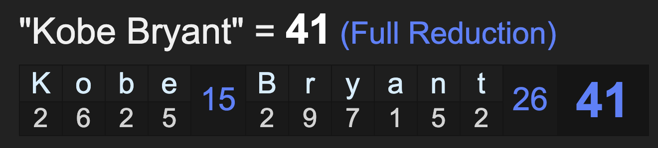 41 is specific to LA, Kobe’s city, where they celebrate Kobe Bryant day on 8/24.