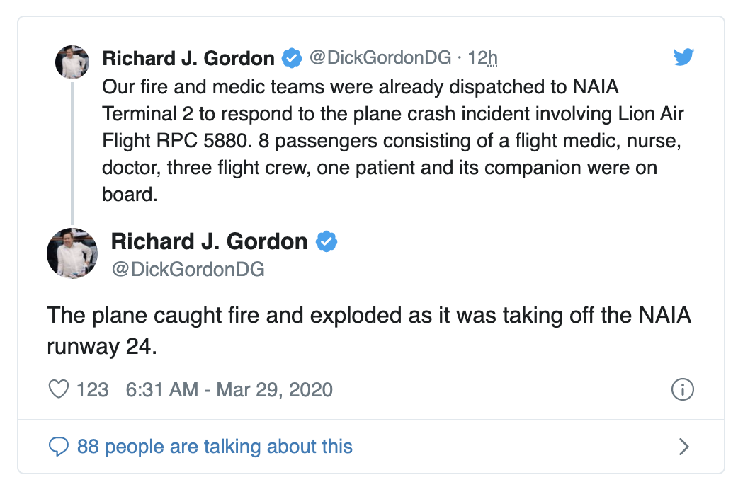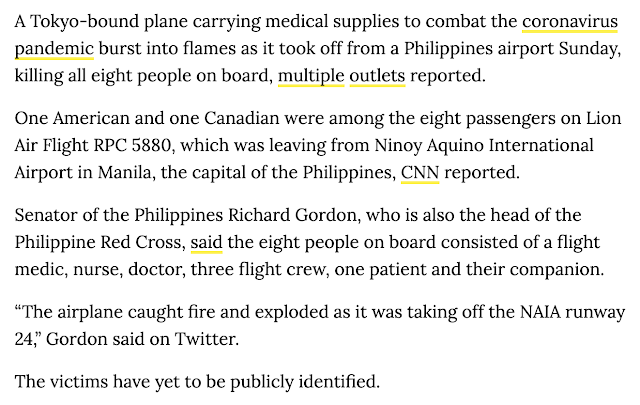 American among 8 dead after plane carrying medical supplies to fight coronavirus crashes in Philippines, March 29, 2020