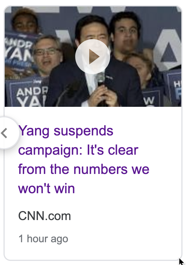 Andrew Yang drops out of Presidential race, February 11, 2020 +His MATH campaign