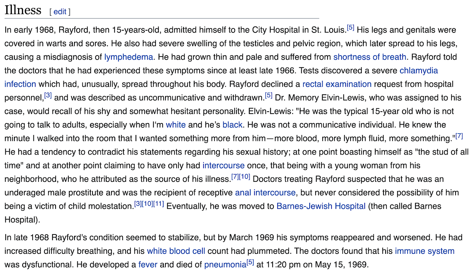 Notice, Robert Rayford was 15, in 1968, the infamous year.