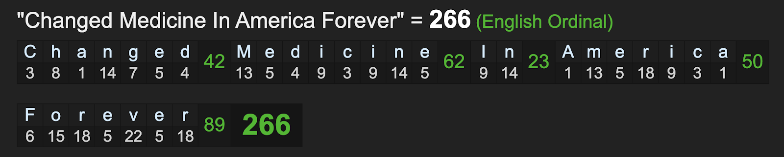 Notice the 266 encoded in the emphasized ‘changed medicine in America forever’.