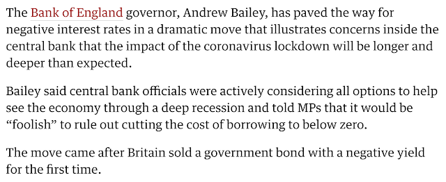 Bank of England paves way for negative interest rates, following Europe and Japan, May 20, 2020