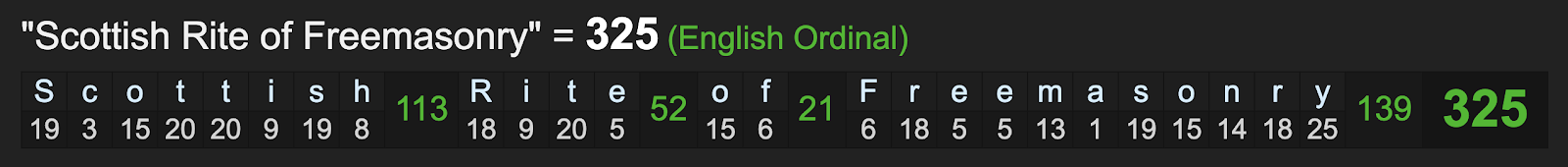 When you think 325, think Scottish Rite, and think Council of Nicea, which means Catholic Church, the entity that owns the United Kingdom.