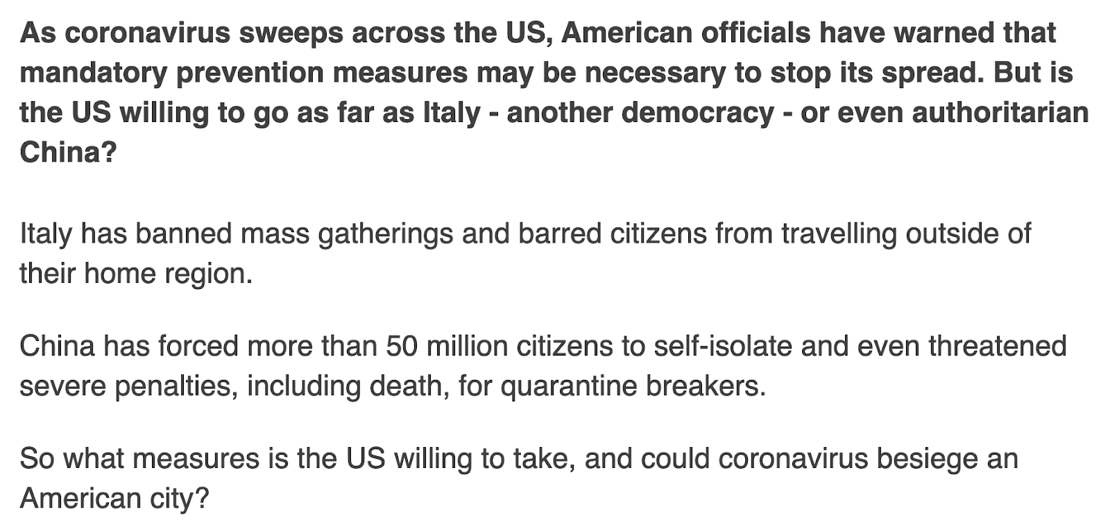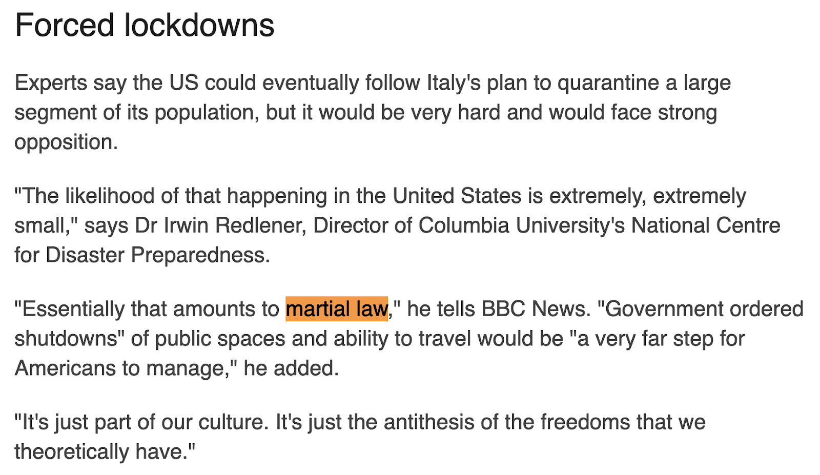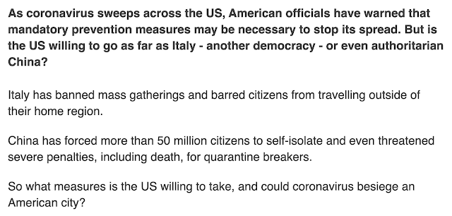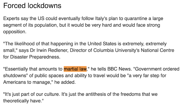 This article, from the BBC, dated March 11, 2020, focuses on if martial law could come to the United States in the wake of ‘coronavirus’.  What do you the numbers reveal?
