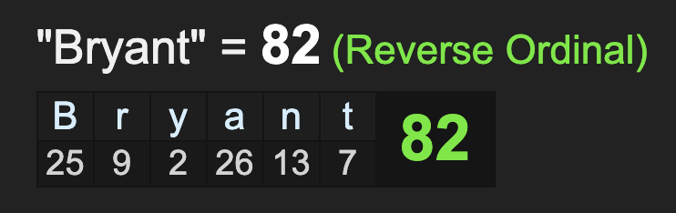 The name Bryant also sums to 82, and Kobe Bryant’s death and burial in ‘Corona del Mar’ has been a key part of this ongoing coronavirus outbreak ritual as well, as discussed in numerous posts, including this one:  https://gematriaeffect.news/pope-francis-kobe-bryants-death-coronavirus-the-coming-contrived-apocalypse/ *and this one:  https://gematriaeffect.news/who-declares-coronavirus-pandemic-march-11-2020-warriors-announce-they-will-play-next-home-game-with-no-fans-first-nba-team-to-do-so/