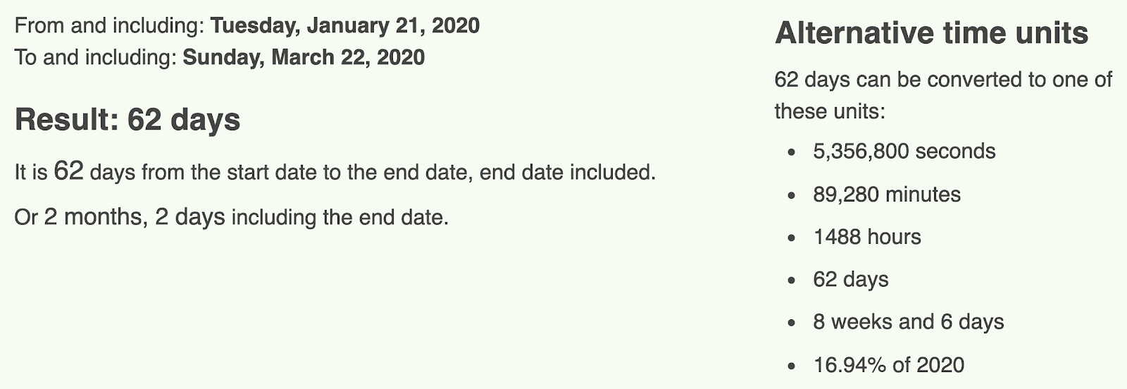 *March 22 will be 61-days after January 21 (or a span of 62)