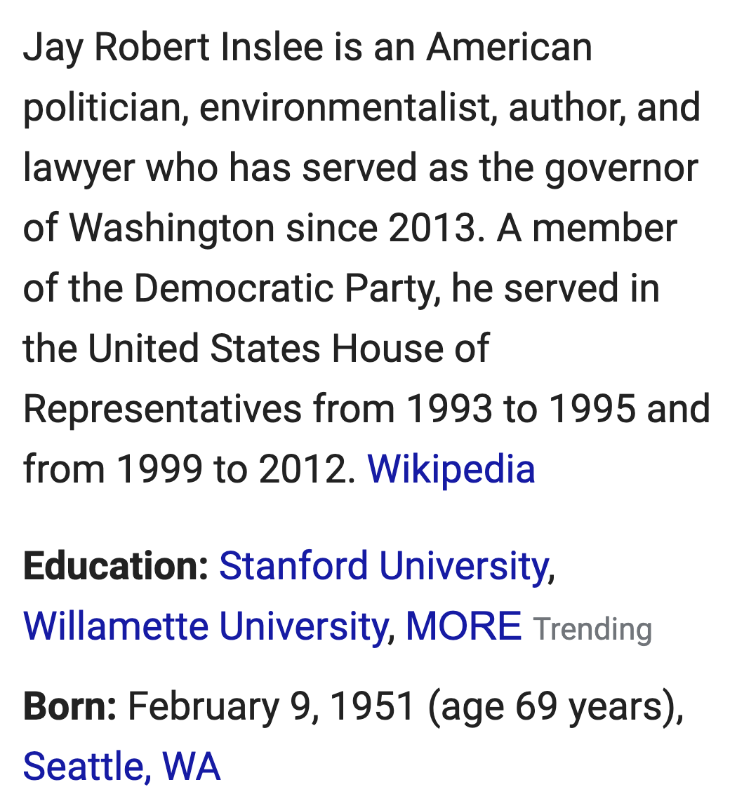 Moving on, March 22 is 42-days after Governor Jay Inslee’s birthday.  Keep in mind Washington State is the 42nd state in order of statehood.