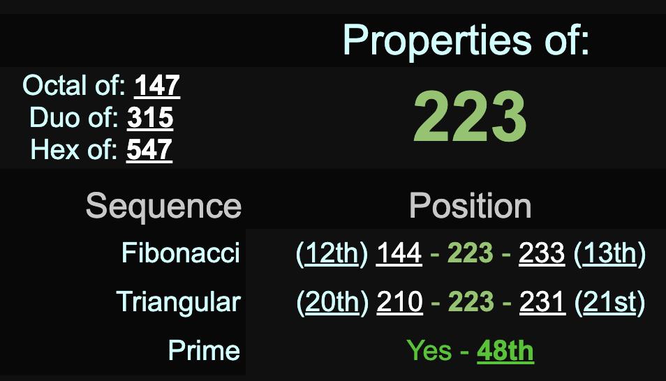 The date March 22 can be written 22/3, like 223, the 48th prime number.