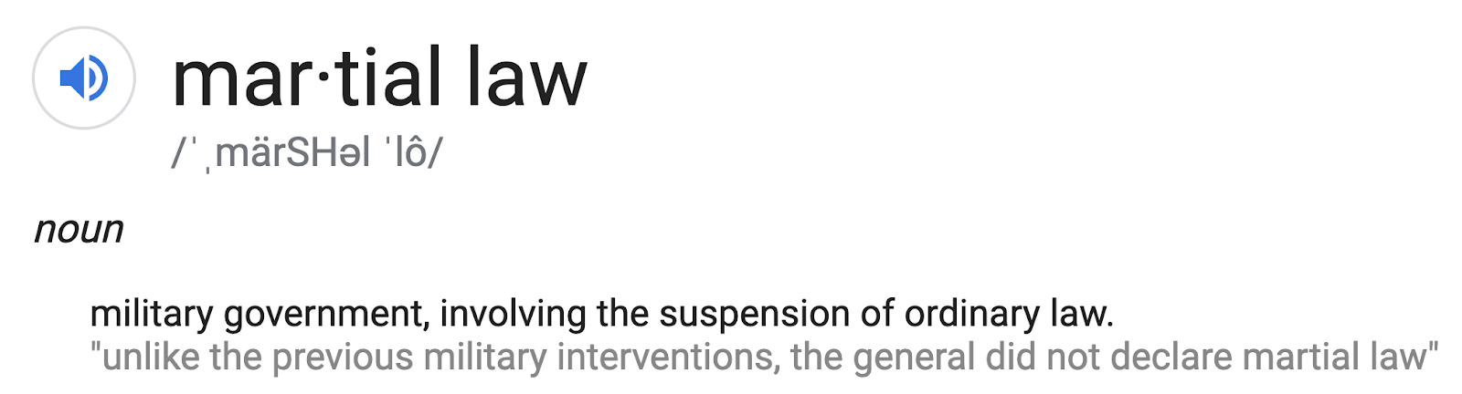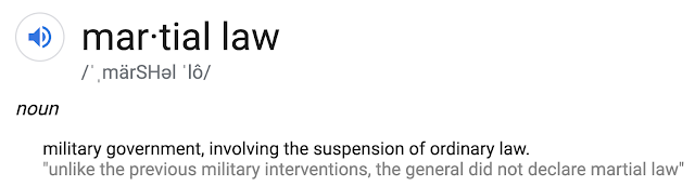 Martial Law means military takeover.