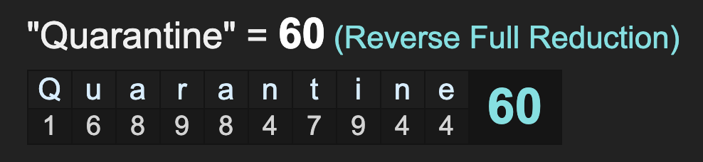 Notice the word ‘quarantine’ sums to 48.  *Freemason = 48