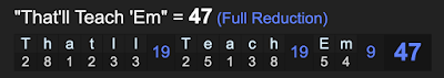 And don’t overlook that he worked for Channel 4. Of course, 4 is the number associated with death in Mandarin and Japanese, it is also the repdigit in 44. As for the name of his show, ‘That’ll Teach ‘Em’, the gematria is clearly masonic.