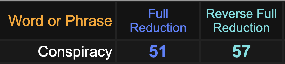As you know, Scottish Rite sums to 57 and 159.