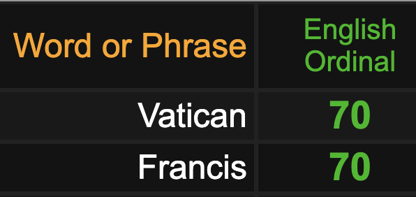 First of all, notice how ‘Covid Vaccine’ equates to coronavirus, 56 and 70.