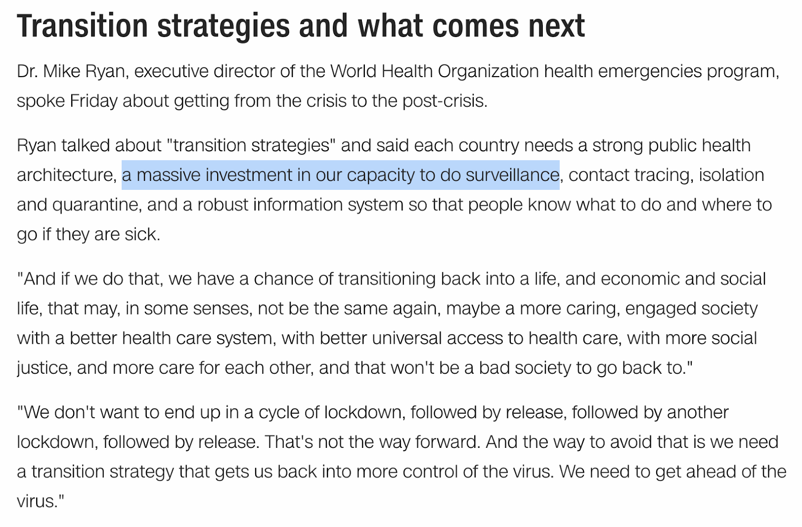 Big Brother calls for a massive surveillance grid for future health architecture to stop the next outbreak, April 4, 2020 news
