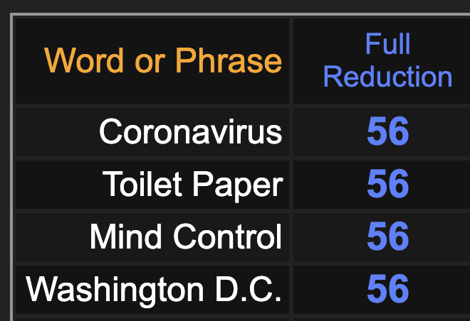 Read more about coronavirus and 56: https://gematriaeffect.news/?s=coronavirus+56