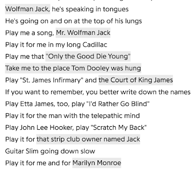 Then he gives us a list of songs to listen to. The only one I know off the top is by Etta James.