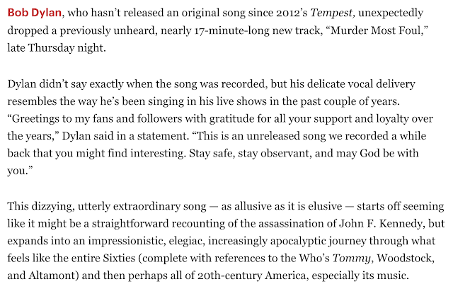 Bob Dylan’s new song, ‘Murder Most Foul’, about JFK assassination, released March 26, 2020