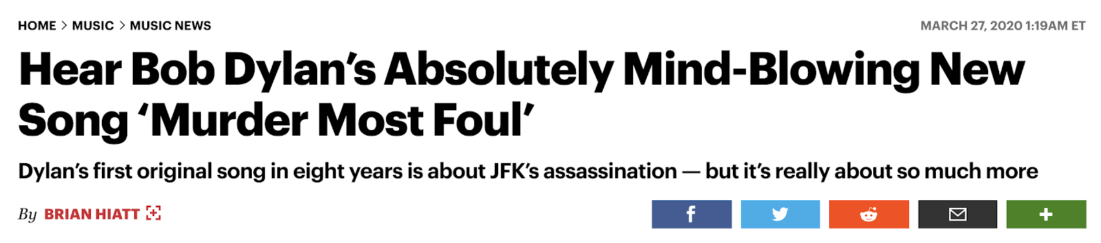 Bob Dylan’s new song, ‘Murder Most Foul’, about JFK assassination, released March 26, 2020