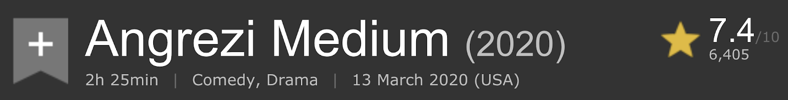His last film was  ‘Angrezi Medium’, summing to 73.